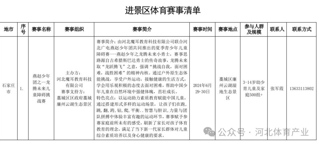 重磅!河北省体育消费季69项“体育赛事进景区”活动清单公布