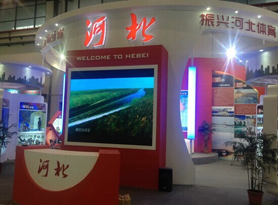 本届博览会上我省本着 “振兴河北体育,建设体育强省”的发展视野,通过120平方米展区,33个版面,2个大屏幕,1个互动专区,生动多元地展示了河北省丰富的体育文化和旅游资源。