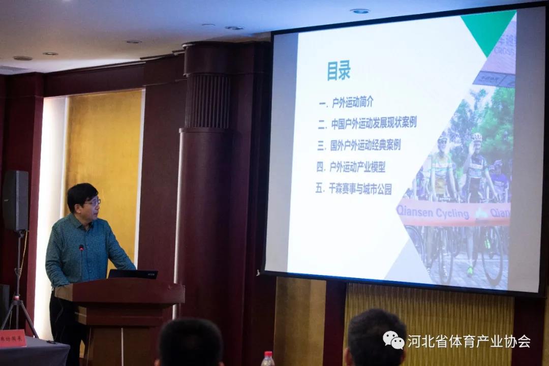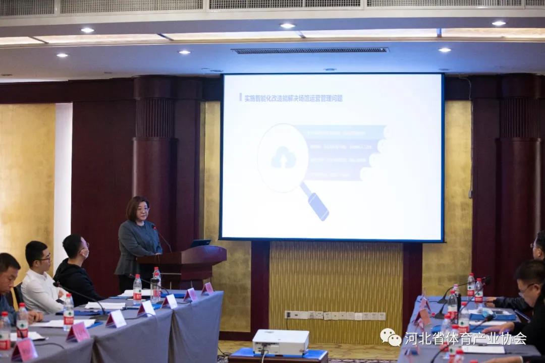 会议第二阶段进行了专题交流分享。来自河北野人体育发展有限公司、河北恒达体育健身器材集团有限公司、北京千森体育文化投资有限公司、绿茵天地场馆经营管理(固安)有限公司、邢台市金力豪健身俱乐部有限公司五家细分领域的行业标杆企业为大家带来了《体育赛事赋能城市建设》、《定州体育用品产业园发展及恒达企业经营思考》、《青少年户外运动发展趋势与产业模型分析》、《智能化提升引领全民健身场馆发展新趋势》、《百姓社区智能健身驿站》等主题分享,共同探讨“十四五”体育发展新思路、新路径,助力体育企业拓宽创新发展思路、把握时代发展机遇,培育符合产业未来方向的品牌企业。