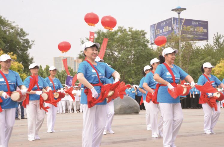 活动现场,2000余名健身群众身着盛装,合着动感的节拍,上演了一场“运动秀”。节目内容精彩纷呈,形式丰富多彩,项目涵盖了柔力球、太极拳、功夫扇、铁球、空竹、腰鼓、水兵舞、广场舞等,活力四射的表演引得现场群众不时发出热烈掌声。在表演人群中既有朝气蓬勃的青春面孔,也不乏白发苍苍的耄耋老人,但无一例外的是,运动的欢愉绽放在每一张面孔上。