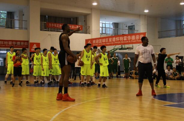 在篮球馆,霍华德的出现让球员们兴奋不已。在热身过程中,这个2米11的大个子,充分展示着他强壮的肌肉与灵活的步伐。与此同时,他的团队带来的世界顶尖训练方法、科学理念以及辅助器械更是令现场球员和观众叹为观止。热身过后,霍华德亲自带领球员们来到场地上,在上篮、对抗、步伐等方面对球员们进行训练指导,并亲自上场示范,其中不乏精彩的空中飞扣表演。
