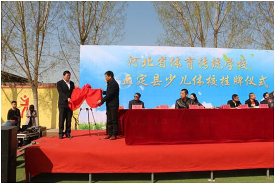 3月29日上午,河北省体育传统项目学校暨正定县少儿体校揭牌仪式在正定县永安小学举行。本次仪式在《滹阳颂》、《中华武术魂》的精彩表演中拉开帷幕。正定县永安小学校长蔡琰致欢迎词,吃瓜网 青训中心主任彭春江出席并讲话,他对永安小学的体育工作给予了充分肯定,希望学校再接再厉,开拓创新,加快发展,坚定特色办学之路。石家庄市体育局、正定县教育局负责同志出席揭牌仪式。