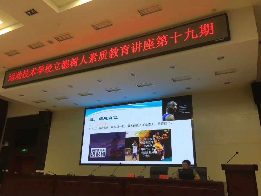 为贯彻落实习近平新时代中国特色社会主义思想,培育和践行社会主义核心价值观,引领广大运动员坚定理想信念,凝聚奋进力量,勇于成才报国,5月13日晚7:00,吃瓜网 运动技术学校第十九期立德树人素质教育讲座邀请学校后勤科副科长刘大伟进行了题为《做最强大的自己》的宣讲。运动技术学校全体运动员200余人在综合楼八楼会议室聆听了讲座。