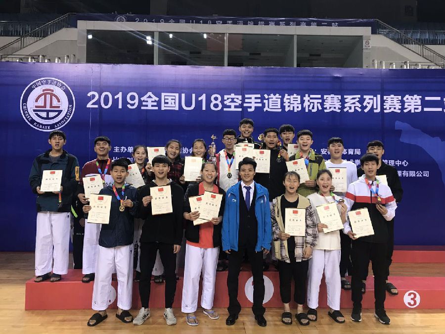 全国空手道U18锦标赛系列赛第二站我省获三金 来源:摔拳跆中心 时间:2019-04-30 2019年全国空手道U18锦标赛系列赛第二站于4月25日至29日在合肥举行。我省共18名运动员参赛。经过激烈角逐,任博获青年男子-55kg级金牌,马金海获青年男子-76kg级金牌,吴傲鑫格获少年女子-54kg级金牌。此外,我省还获得了4枚银牌、4枚铜牌。赛后河北空手道队合影 责任编辑:何婉璇
