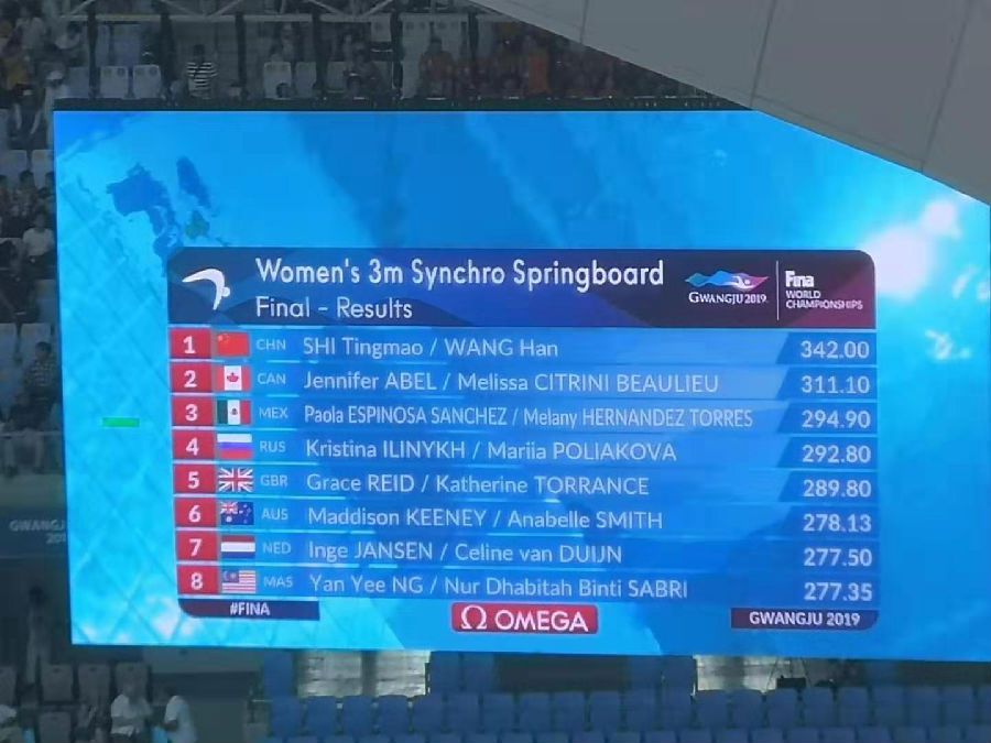 王涵夺得光州游泳世锦赛女子双人3米跳板冠军