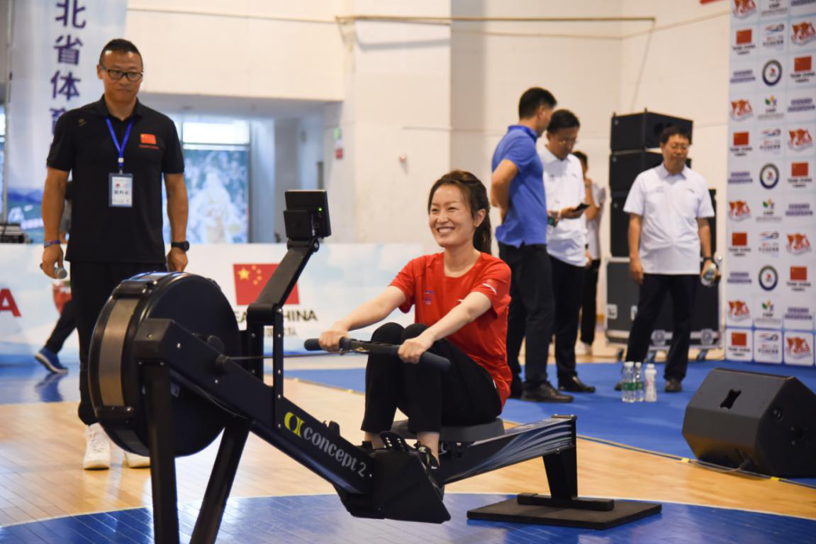 赵颖慧进行轻量级4分钟划船测功仪挑战
