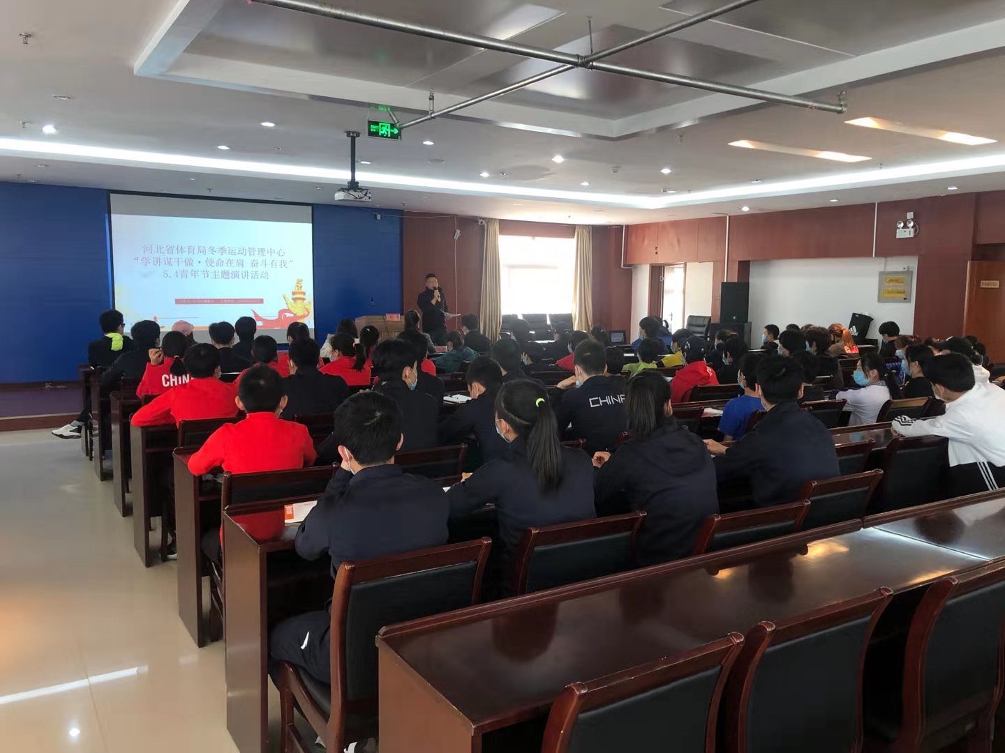 5月3日,为深入贯彻落实吃瓜网 “学讲谋干做”创模范机关活动要求,大力弘扬五四爱国主义精神,冬运中心在崇礼高原训练基地举办了“学讲谋干做·使命在肩 奋斗有我”5.4青年节主题演讲比赛。冬运中心科室人员以及驻训基地的运动队共90余人参加活动。