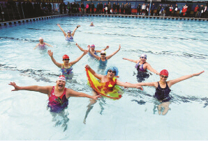 “纪念石家庄解放69周年”冬泳比赛开赛 来源:健身中心 时间:2016-11-17 记者从石家庄市体育局获悉,11月13日,石家庄市冬泳协会举办的“纪念石家庄解放69周年”冬泳比赛在省会友谊公园拉开帷幕,来自全市的186名冬泳爱好者在水温只有8℃的泳池中一决高低。 比赛项目有蛙泳、蝶泳、自由泳,最为精彩的4×50米接力将现场气氛推到高潮,选手中年龄最大的刘满聚老人今年已经85岁。(记者 冯晶) 责任编辑:赵鑫雅