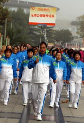 刚入人民广场,记者就被款款走来的健步走队伍惊艳到了。这些来自全市各个公园社区的27支队伍的一千五百多人,身着各自团队的艳丽服装,身姿挺拔,步履矫健,整齐划一。仔细看,大多都是已到耳顺之年的花甲老人。
