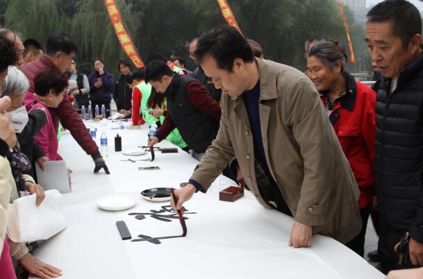除了步履矫健的健步走和时尚热情的广场舞,刚柔并济的太极拳当然也不能缺席老年人的舞台。杨式太极拳第五代传人韩兴民也在现场表演了精彩的太极功夫。与此同时,活动组织者还将健身与健心并重,在活动中融入了书法展示、主题摄影作品与主题文学作品征集等文化元素。