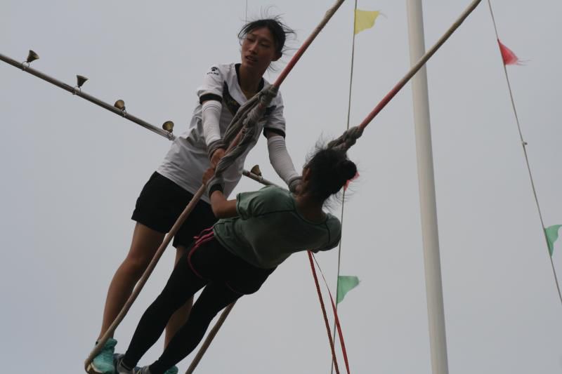 秋千是本届民族运动会上唯一一个全部由女性选手参加的项目。参加高度竞赛的选手们在13米高度的秋千架上展开了激烈争夺,最终来自承德代表队的韩征以触铃8米1的高度赢得了冠军。