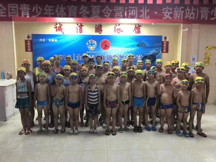 8月10日,2019年全国青少年体育冬夏令营(河北·安新站)青少年游泳普及夏令营在雄安新区诚信健身俱乐部开营,本期活动五天时间,共有6至15周岁的300余名青少年参加。在培训内容设置上,由资深教练员、原省游泳队队员在开班第一天为青少年普及游泳基本知识,进行游泳安全培训,在接下来的四天里全面培养学生游泳技能、指导学生熟练掌握游泳的技巧、自救方法,提高青少年学生的自救、自护能力。五天的培训必将丰富广大青少年的暑期生活,引导学生度过一个健康安全的暑假。