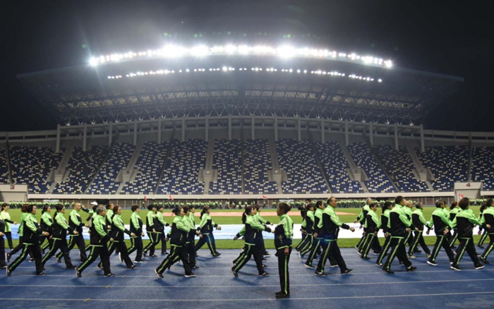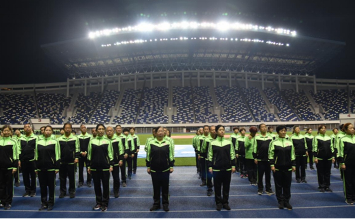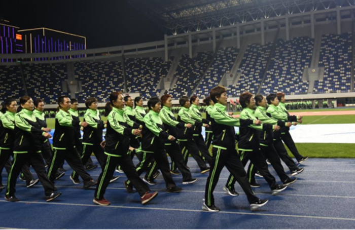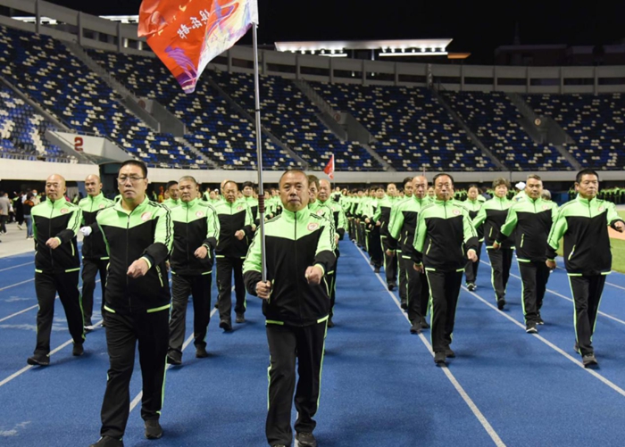 活动中,健步走爱好者统一着装,迈着整齐的步伐,排列整齐的方队,喊着嘹亮的健身口号,在裕彤体育场内进行了健步走的集中展示,现场气氛热烈高昂,展现出良好的精神状态和严谨的操练风貌。