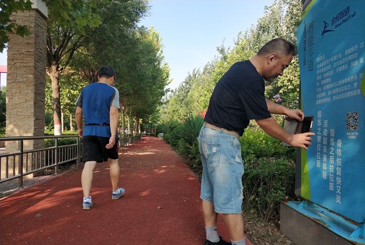 “智能步道可以为群众在运动健身中提供清晰的量化依据和科学指导,智能步道东西两头的大屏上还会统计一周步数排名,这不仅迎合了‘全民晒步数’的潮流,也激发了更多人对运动的兴趣,据统计,目前每天在智能步道健身人数达到1000人次。”李胜军说。
