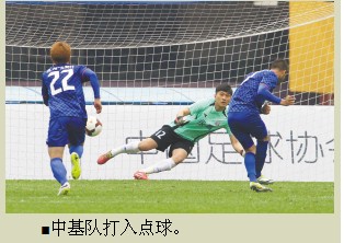 屋漏偏逢连阴雨。失球后的永昌再遭打击,后卫刘君鹏拼抢中手腕受伤离场,原本因冯绍顺停赛而打了折扣的永昌后防线雪上加霜。果不其然,中基正抓住永昌后防薄弱软肋玩命狂攻,朱海威、马尔奎斯、耿袈岂几名快马,令永昌队陷入被动。第53分钟,永昌后卫孙潇霖禁区内手球被罚点球,马尔奎斯主罚破门,梅开二度。没想到中基中甲首胜,是在同城对手身上得到。