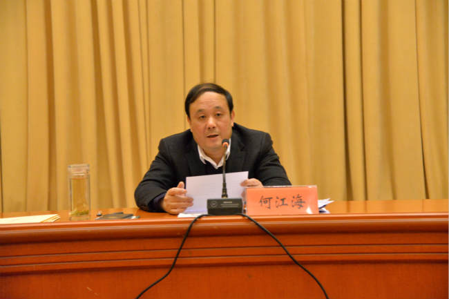 局长何江海作工作报告,副局长李东奇主持会议并做大会总结。