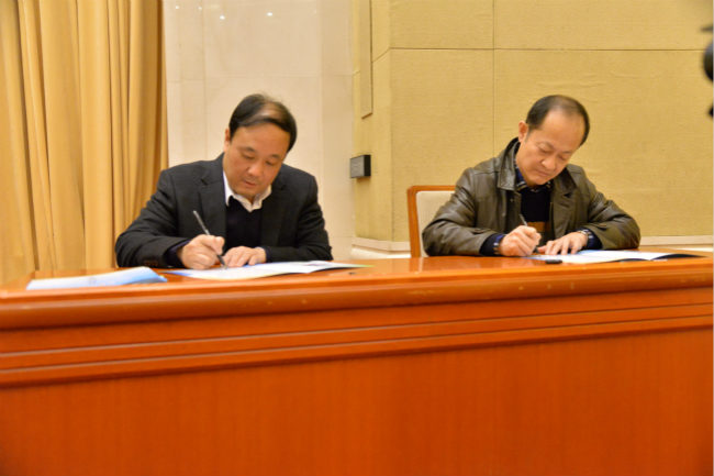 局长何江海与田径中心主任宋美卿签订《全运会目标任务书》
