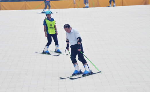 调研期间,何江海与活动承办方、北京星奥科技服份有限公司负责人进行了深入交谈,详细了解了旱雪项目的造价、推广、维护以及安全性等方面的情况,进一步明确该项目推广的可行性。随后,何江海与李东奇在工作人员的指导下,亲自上“雪道”进行了体验,并表示旱雪相较于真雪阻力更大,非常适合初学者。