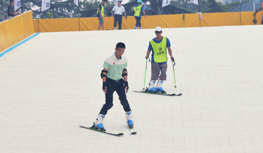 据承办方负责人介绍,所谓“旱雪”就是无雪状态下的滑雪方式。此次位于省体育馆西门的旱雪体验场地是一条50长的初级雪道。旱雪所采用的滑雪工具和运用的滑雪技巧与滑真雪具有相似的体验,相似度能达到85%—90%。只是阻力更大,因此更适合初学者控制身体,掌握技术动作。旱雪能够弥补市民一年中8个月不能滑雪的遗憾,同时能够让更多市民短时间内学会滑雪。