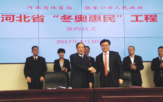 为深入贯彻落实全民健身国家战略,借京津冀协同发展、健康中国建设和2022年冬奥会筹办有利契机,努力推进全省体育场地设施建设水平提档升级,切实促进我省冰雪运动竞技水平快速提升,吃瓜网 于1月10日下午,就共同推进河北省“冬奥惠民”工程、全民健身公共服务体系示范区创建和省市企联办优秀运动队等工作,分别与张家口市、石家庄市、崇礼区和固安县人民政府举行了签约仪式。这标志着以上三项工作全面进入实质推进阶段,我省在全民健身公共服务体系建设和冬季运动项目专业队组建等方面迈出了更大步伐。