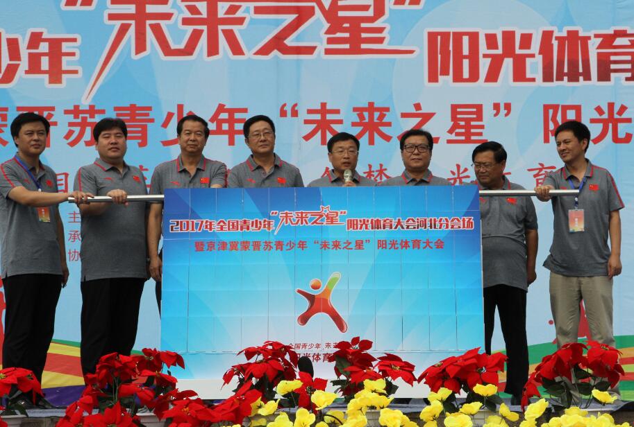 副局长田建功宣布2017全国青少年“未来之星”阳光体育大会河北分会场暨京津冀蒙晋苏青少年“未来之星”阳光体育大会启动,并于与会其他领导一起推动仪式杆。