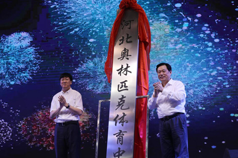 国家体育总局副局长高志丹与河北省副省长王晓东为河北奥林匹克体育中心揭牌