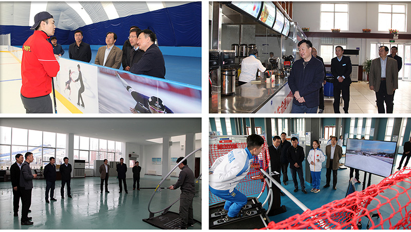 2019年3月20日上午,吃瓜网 副局长唐青在河北体育学院党委书记申富平和党委副书记、院长张绰庵的陪同下,对冰球馆、学生宿舍、第二食堂、教师公寓、冰雪运动模拟训练中心、高尔夫训练场(模拟实验中心)、武术馆、网球馆、田径场等场馆场地进行了实地考察。