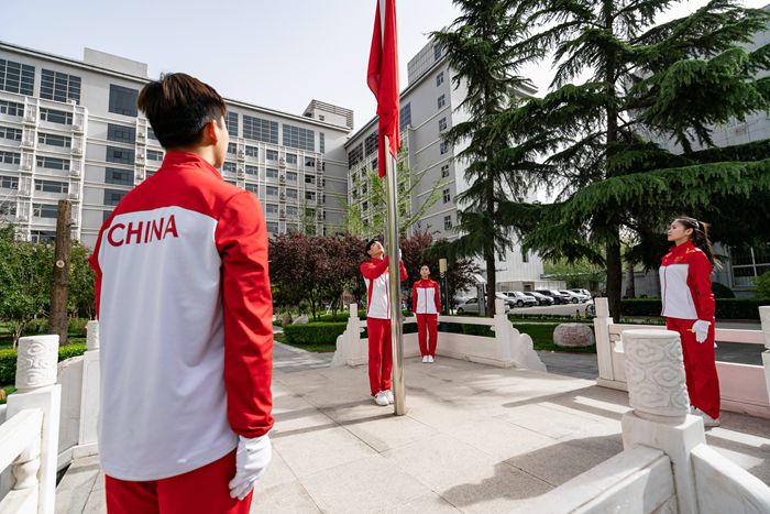 运动技术学校师生参加升旗仪式