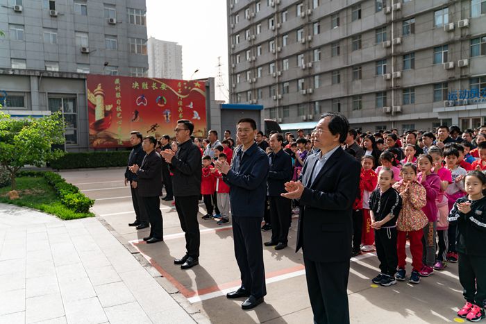 党组书记、局长张泽峰,党组副书记、副局长李东奇,副局长田建功,巡视员张绰庵,副巡视员陈飞及局机关全体工作人员、运动技术学校师生一起,参加了升国旗仪式。