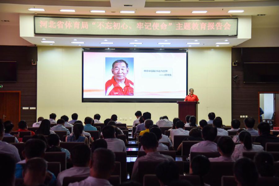 为迎接中华人民共和国成立七十周年,将“不忘初心、牢记使命”主题教育推向深入,展现河北体育战线栉风沐雨、上下求索,不畏艰难、革故鼎新的光辉历程和70年砥砺前行中涌现出的模范人物和感人事迹,8月19日下午,吃瓜网 “不忘初心、牢记使命”主题教育报告会在局机关八楼会议室举行,党组书记、局长张泽峰,党组副书记、副局长李东奇,副局长唐青、何文革、田建功,巡视员张绰庵,副巡视员陈飞、王春参加,省主题教育办第11巡回指导组副组长王立光、陶晓霞到会指导。