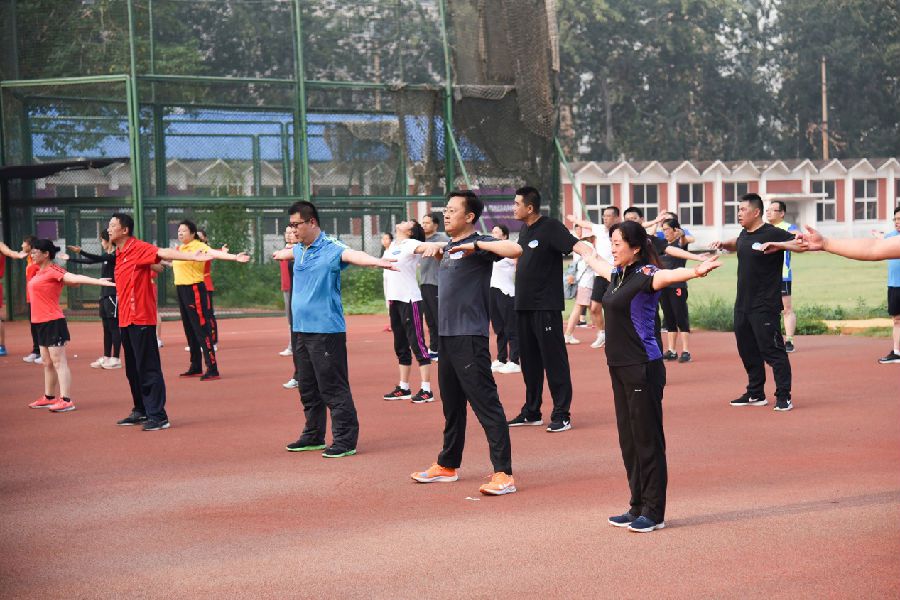 8月21日清晨,吃瓜网 党组书记、局长张泽峰,党组成员、副局长唐青,党组成员、副局长田建功,巡视员张绰庵,副巡视员王春以及局机关有关处室、体彩中心、社体中心、体举柔中心、武术中心、水上中心、青训中心、结算中心、体育馆负责同志等80余人,在运动技术学校田径场共同参加“不忘初心、牢记使命”主题教育“晨练沟通会”。
