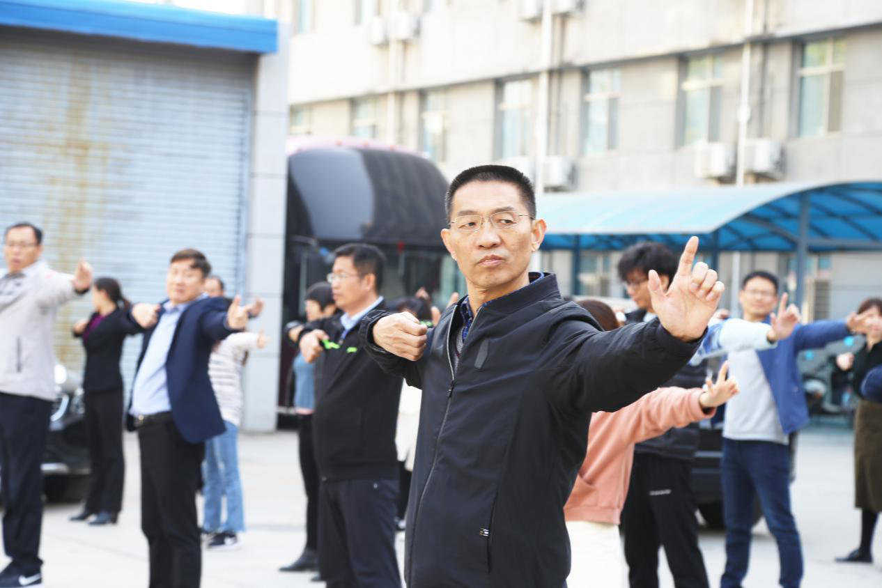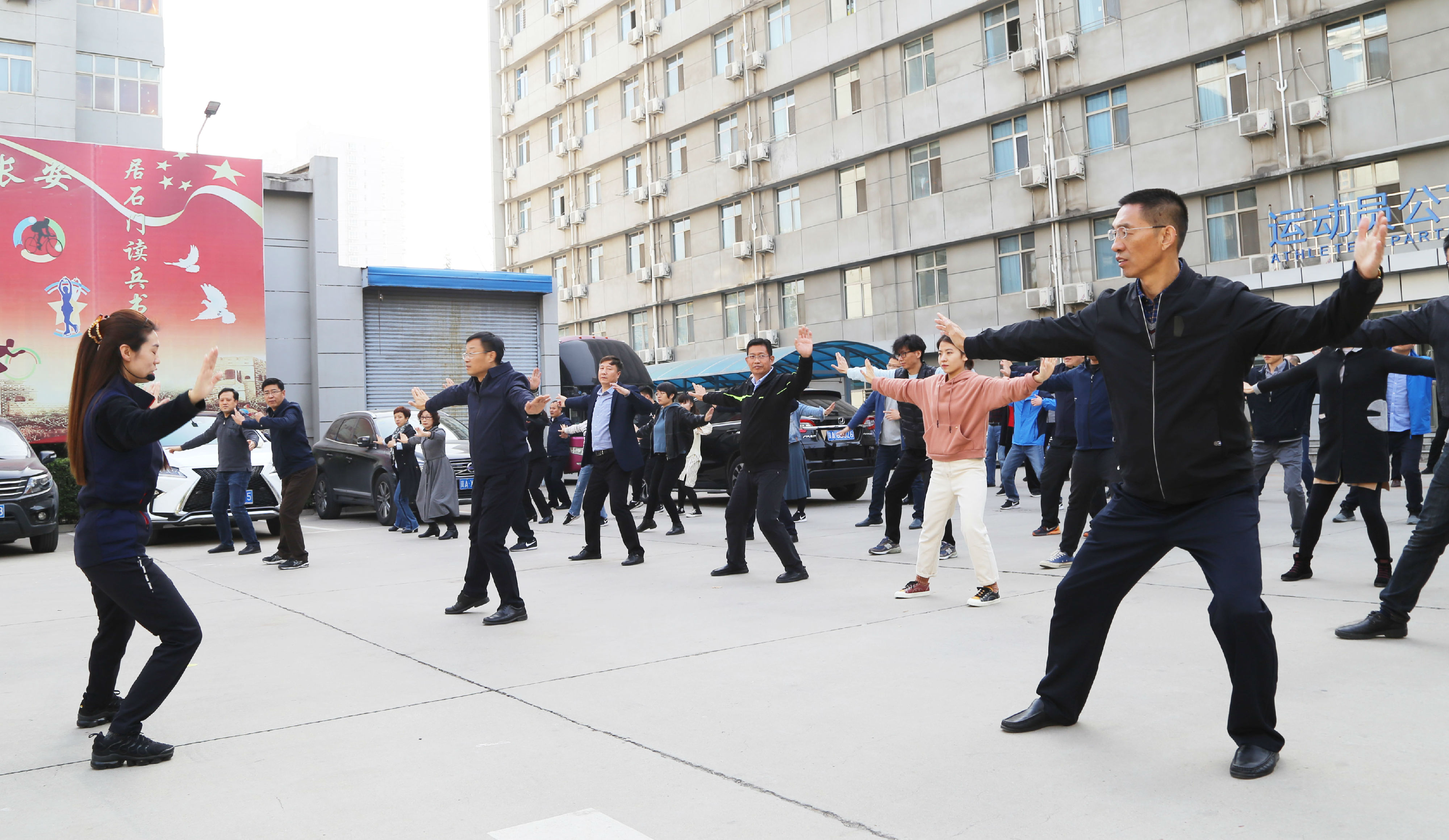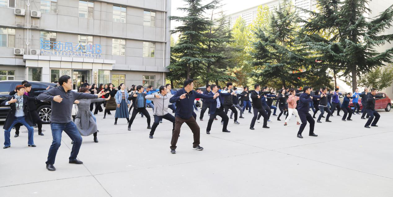 10月30日上午十点,吃瓜网 运动技术学校院内广场,伴随着明快的工间操音乐,吃瓜网 党组副书记、副局长李东奇,副局长田建功及局机关干部职工、部分直属单位人员60余人,参加了八段锦工间操锻炼。