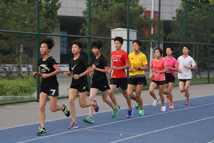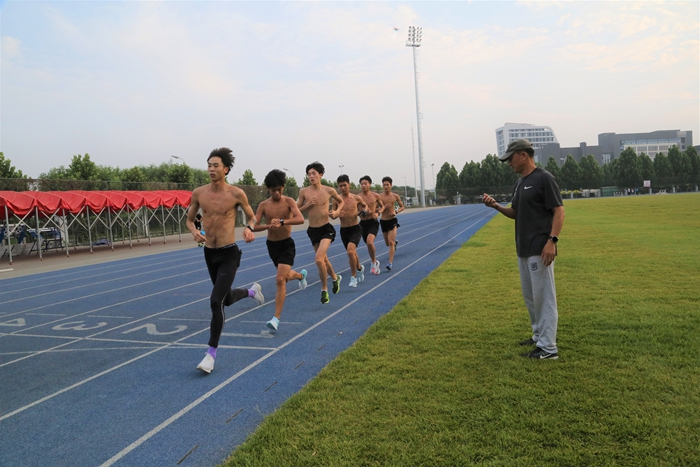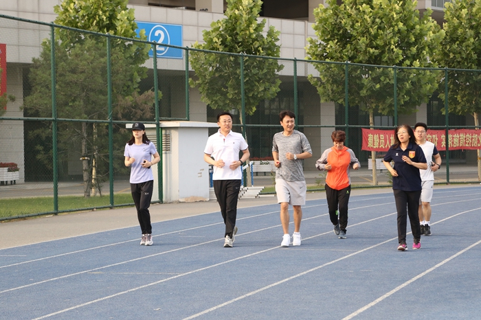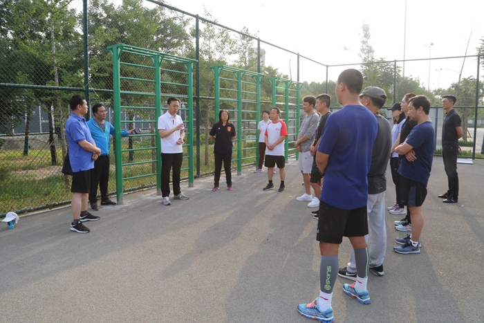 张泽峰与田径、大球、小球中心工作人员、教练员、中心负责同志共同进行晨跑