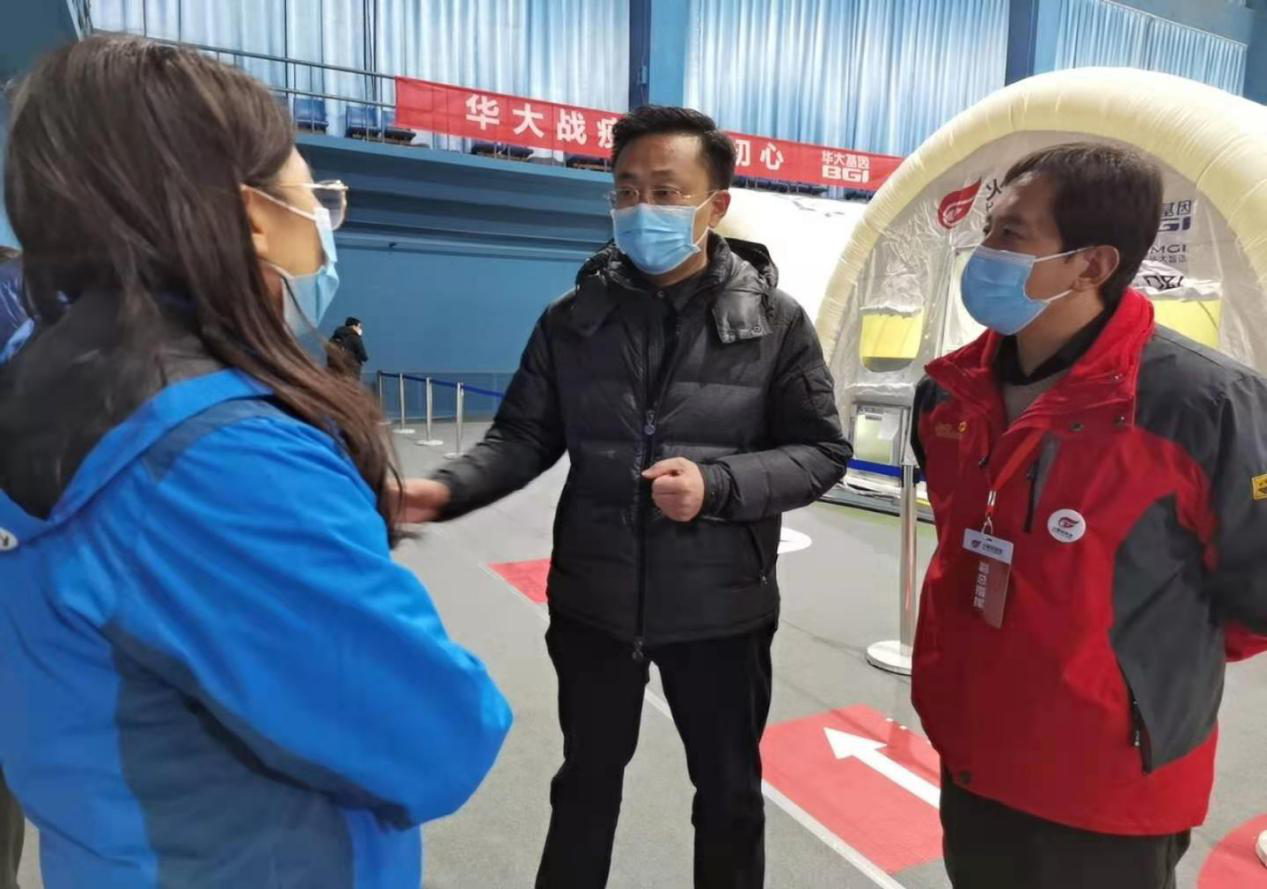 进入网球馆后,张泽峰第一时间慰问华大工作人员,详细询问近期生活情况及对体育馆工作的意见建议。随后张泽峰再次走进火眼实验室场地,认真听取了工作人员的介绍,全面了解实验室运转情况和医疗人员工作状态。他指出,华大集团在石家庄抗击疫情工作中贡献技术、争取时间,不分昼夜24小时工作,全力保障了石家庄核酸检测效率。关键时期,河北体育人更要为华大集团贴心服务,高效保障,无条件给予支持,为工作人员解决后顾之忧。
