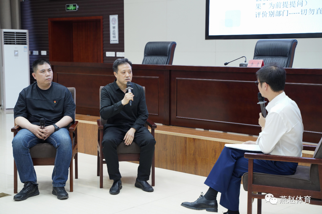 在模拟演练环节,赖冬阳老师以《避坑-发布-传播,政府官员回答记者提问的道与术》为题,通过媒体访谈栏目的形式,结合四起体育舆情事件,分别与四组省体育系统“模拟官员”进行访谈对话,对话过程中,他通过质疑、打断等方式扰乱“模拟官员”的对话思路,考验他们的临场应变能力和突发事件的处置能力。每组演练结束后,李新民主任针对学员表现进行深入点评和现场教学,让参加培训的人员了解了在面对记者采访时如何做到有效判断其目的、快速定位的战略沟通技巧,提高了全面把握和现场调控能力,特别是面对突发事件处置的舆论引导综合水平。