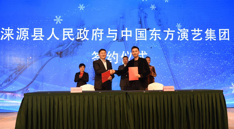 座谈会上,涞源县人民政府与中国东方演艺集团就深化合作举行了签约仪式,国家冰雪运动推广大使李佳军与河北冰雪运动推广形象大使、奥运冠军张一璠共同发布“一起上冰雪”倡议,倡议以运动为载体,以冰雪为牵引,让更多的人“一起上冰雪,一起迎冬奥,一起向未来”。最后,与会领导嘉宾共同观看了《激情冰雪 相约冬奥》专题片。