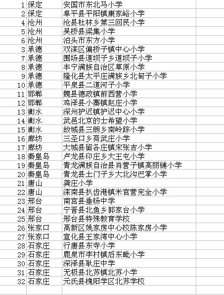 2014年度“快乐操场”捐赠公益活动,目前报名阶段工作已经结束,今年,河北省体育彩票管理中心和燕赵都市报首次采用特邀评委远程投票、集中汇总的方式对今年申请快乐操场的165所学校予以选定。5月29日,2014年度“快乐操场”活动经过评委们近三个小时的评审,32所受助学校的名单终于出炉了。名单如下: