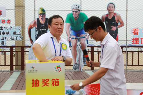 当天,除了精彩的比赛,赛道内外同样吸引人的还有众多体彩元素的宣传口号和广告,看起来非常醒目大气,秦皇岛体彩中心特意在比赛现场搭起了黄色的顶呱刮遮阳篷,现场销售顶呱刮即开彩票,并向来现场的选手和群众宣传体育彩票的公益性。现场销售情况十分火爆,引来众多观众购买, 中奖叫好声此起彼伏。此外,现场的抽奖活动也吸引众多观众参与,除了销售即开票,每一位现场观众还有机会获得价值10至100元不等的体育彩票,不少现场观众还体会了二次幸运,即得到的即开型体育彩票还刮出了奖金。一位姓王的参与者说,他是来北戴河旅游的游客,平时就喜欢购买体彩,没想到,这次出来玩,不但看到了精彩的赛事活动,还看到了体育彩票的身影,忍不住就来参与了,“哈哈,我的运气还不错,获得了二等奖呢!”