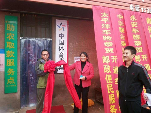 2014年11月8日上午,来自邢台市体彩中心张苏云主任与邢台市邮政分公司电子商务局路薇局长,平乡县邮政局宋韶敏局长及文体局赵红格局长等一行人,赶到位于邢台市平乡县西位村、程下庄村的邮政服务站, 为邢台第一批“邮政渠道投注站”开业举行授牌仪式。此次授牌仪式,标志着我市邮政渠道投注站铺设工作的全面展开。