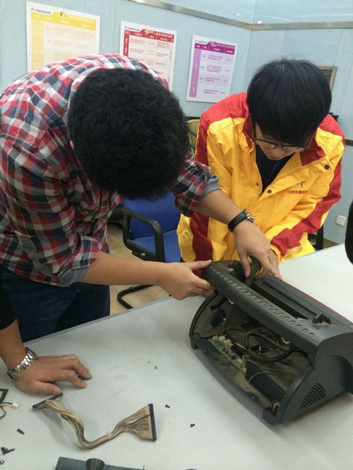 在对终端机有了初步的了解以后,实训组学员分成两组对终端机进行拆装,每个人都亲自动手进行拆装,虽不能短时间内全部了解终端机发生故障所对应的问题原因,但是学员们在这次拆装过程中全面了解了终端机的配件及其功能,也为后期的实地维护与维修打下了坚实的基础;