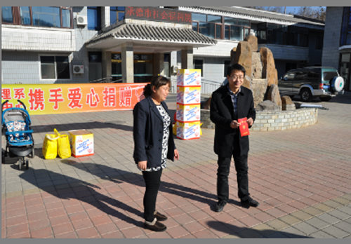 河北体彩中心承德中心开展爱心吧捐助活动 来源:彩票中心 时间:2014-11-25 河北体彩微信,定期送好礼,开奖早知道 11月17日,河北省体育彩票管理中心承德中心携手河北旅游学院旅行社管理系为承德市福利院的老人和儿童献上爱心。本次活动的捐助物品主要有爱心吧收集到的衣服、被子等,除此之外还有一些健身器材。承德市福利院的院长代表福利院的老人和儿童对体彩中心表示感谢,并给我中心授予了捐赠证书。“用公益改变世界,用爱心温暖心灵”相信体彩“爱心吧”将继续履行中国体育彩票的公益使命,为人们搭建起爱心桥梁,不断的为需要帮助的人传递温暖。 编辑:zly 责任编辑:吃瓜网