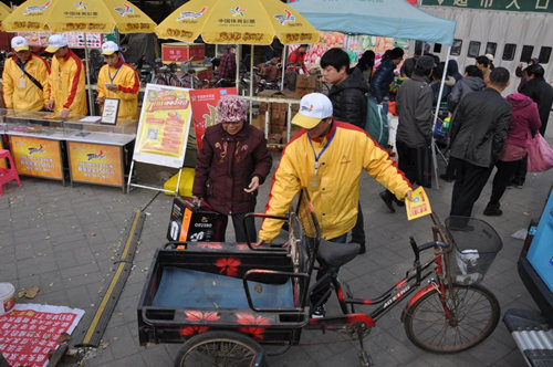 经过两天自发的讨论和方案制定,廊坊实训学员于11月30日进行了即开户外小规模销售,通过网点业主的帮助,活动的场地定在了廊坊相对热闹的明珠超市门前。