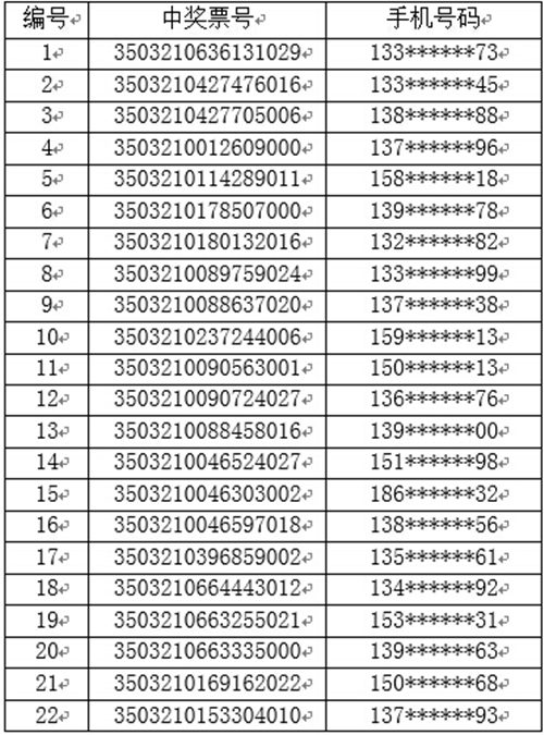 此次抽奖活动中, 共有22万个符合条件的中奖票的票号参加抽奖,抽中的500个幸运票号中,河北省喜中22个。