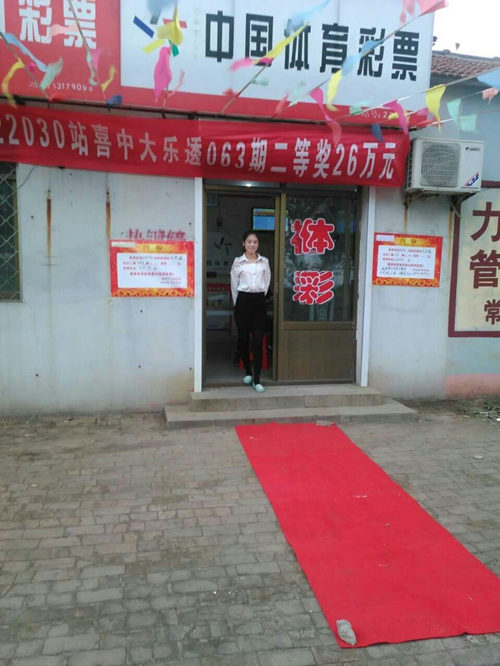 6月4日早晨不到7点,盐山22030体彩投注站的业主就开始忙上忙下的张罗,打扫卫生、写中奖喜报、挂条幅、买鞭炮,一脸的笑容,忙的不亦乐乎,要问这是为什么,原来6月3号的15063期大乐透她的店中出沧州市唯一一注二等奖,奖金260988元。她要以最快的速度把这个好消息宣传出去。