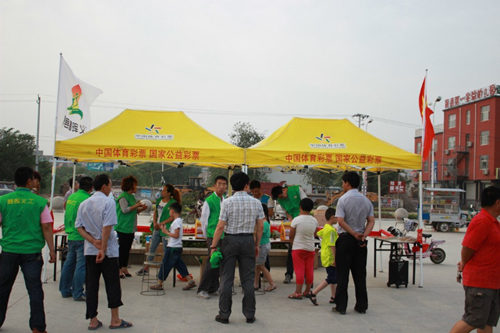 6月初,景县、冀州、枣强、深州、安平等等相继开展即开小规模活动,并取得了相当好的成果。尤其是在景县,即开小规模销售活动得到“春晖义工”的大力支持和帮助,整个卖场的销售人员均为“春晖义工”志愿者,并且卖场所得收入将全部捐助给需要帮助的人,更加体现了体育彩票的公益性。景县的即开小规模销售活动相当火爆,甚至引起了景县电视台的注意,并在电视节目上进行了专题报道,极大推动了当地彩票销售的氛围。另外在深州、冀州等等的即开小规模即开活动开展地也十分顺利,并取得了非常好的效果。