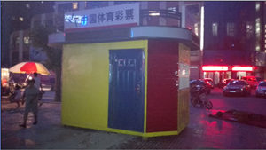 过去即开型彩票销售主要是以投注站销售为主,流动摊点、帐篷形式为辅,在节假日的公共场地或部分彩票站点销售,周期比较短,而即开销售示范亭不但可为彩民遮风挡雨,而且其亮丽的户外造型,也成为宣传公益体彩的广告载体,进一步扩大了体彩的市场影响力,极大地提高了体彩公益形象。同时,即开销售示范亭销售周期更具长期性,可以为彩民提供更便捷、优质的购彩服务。