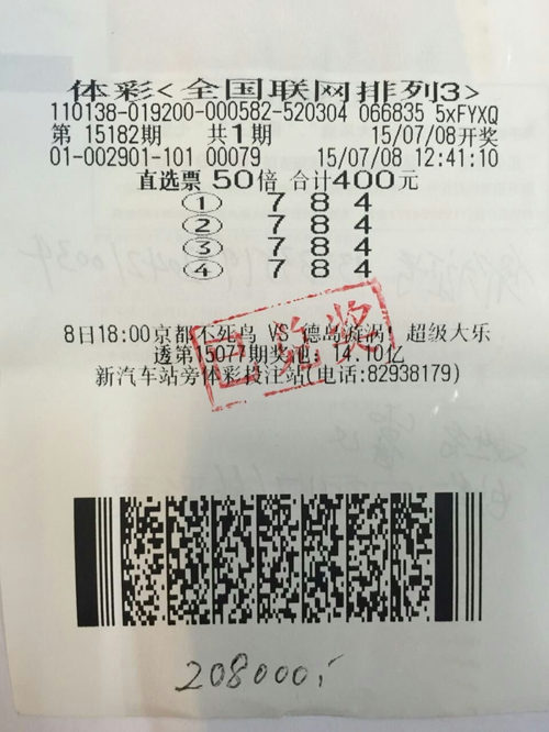 平山彩民喜中200注排列三20.8万元