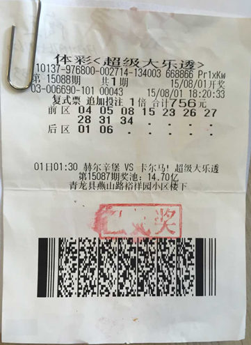 将近九点,终端机发来开奖信息,打开一看,秦皇岛市中出大乐透三等奖追加一注。销售员小红一下就辨认出这注三等奖追加正是被那位低调的女士所揽获。