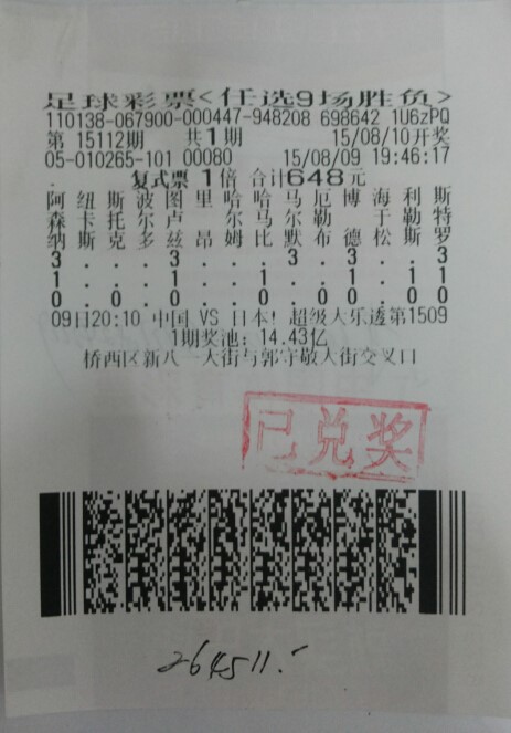 该网点业主对胜负彩有着十几年的研究,尤其是对澳盘变化和欧赔指数较为精通,牛先生才经常特意跑去那里购彩。第15112期胜负彩该业主对阿森纳这场比赛明确指出有冷门迹象,经过一番分析业主建议牛先生采取全包战术,结果阿森纳主场0:2不敌西汉姆,造就了本期第一冷门,最终牛先生一举拿下本期河北省独一无二的任选九场一等奖。