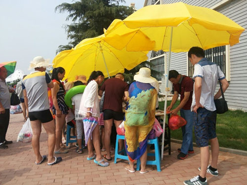 渔岛位于“中国最美八大海岸”之一的昌黎黄金海岸中部,居国家级海洋类型自然保护区中心位置。因其盛产鱼虾参贝,以鱼为主故名“渔岛”。渔岛具有沙细滩缓水清潮平的沙质海岸浴场,还有来自千米以下岩层的温泉泳池。今年7月开始迎接游客,每天慕名而来的游客达2-3万之多。秦皇岛体彩中心工作人员8月8至9日组织业主利用休息日的时间,来到这里进行户外销售。